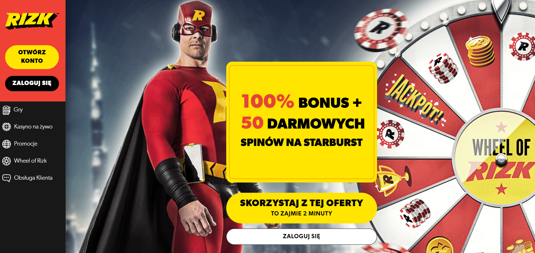 Do skorzystania z usług tego kasyna niezbędna będzie najpierw w Rizk rejestracja. Ale bez obaw, jest to bowiem bardzo proste zadanie, z którym uporasz się w kilkanaście sekund. Po wejściu na stronę główną kasyna spójrz na czerwony obszar w lewym górnym rogu. Znajdziesz tam żółty przycisk z etykietą „OTWÓRZ KONTO”.