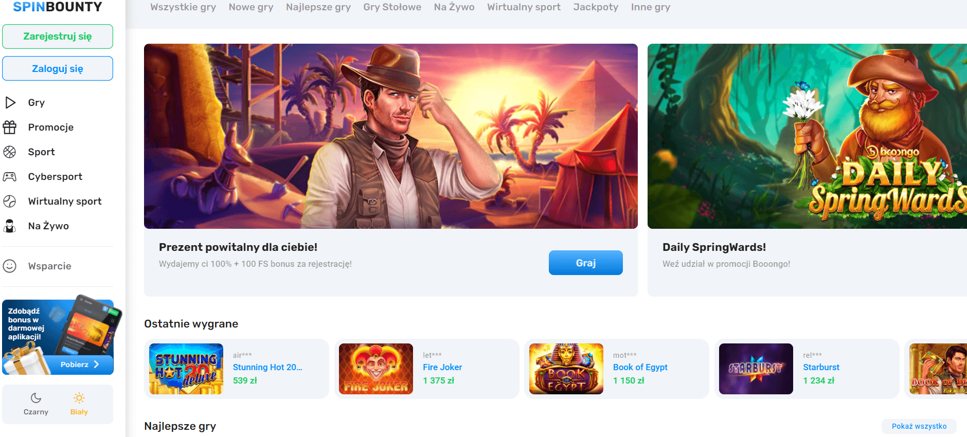 • Najlepsze gry. Są to tytuły cieszące się największym uznaniem wśród graczy w SpinBounty.